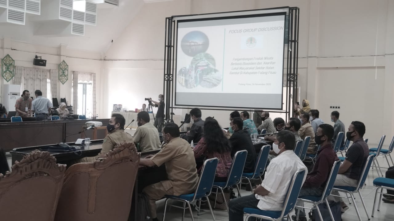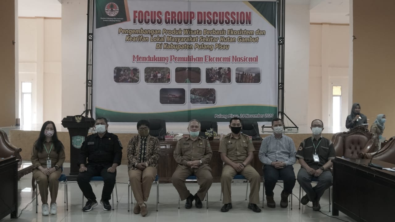 Terkait hal ini, Pusat Penelitian dan Pengembangan Hutan (Puslitbang Hutan), Badan Litbang dan Inovasi (BLI) KLHK menggelar FGD Pengembangan Produk Wisata Berbasis Ekosistem dan Kearifan Lokal Masyarakat Sekitar Hutan Gambut di Kabupaten Pulang Pisau, yang bertempat di Aula Bappeda Kabupaten Pulang Pisau, Selasa (24/11).