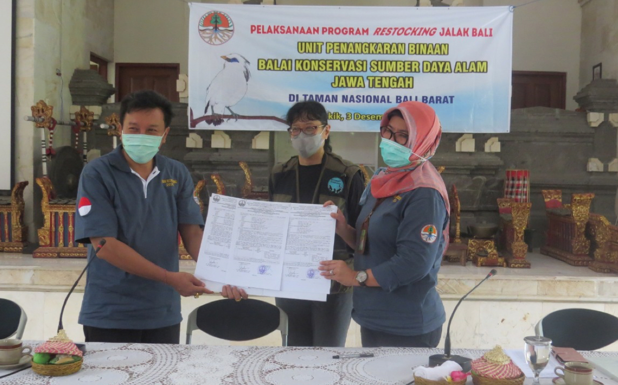 Peningkatan populasi burung curik bali di habitat alami kawasan Taman Nasional Bali Barat (TNBB) tidak terlepas dari dukungan para pihak. Penangkar burung curik bali di Jawa Tengah dan Balai Konservasi Sumber Daya Alam (BKSDA) Jawa Tengah kembali melaksanakan restocking di Taman Nasional Bali Barat (TNBB). Penyerahan burung dilaksanakan secara seremonial di Aula Kantor Balai TNBB yang dihadiri oleh Direktur Konservasi Keanekaragaman Hayati (KKH), Drh. Indra Exploitasia pada Kamis (3/12/2020).