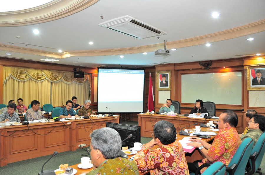 Pushumas Kemenhut, Jakarta : Menteri Lingkungan Hidup dan Kehutanan Siti Nurbaya dan Menteri Energi dan Sumber Daya Mineral Sudirman Said membahas tentang Panas Bumi dengan rancangan Peraturan Menteri LHK tentang izin pemanfaatan jasa di kawasan hutan konservasi , untuk sinkronisasi UU 21/2014 , Jumat (20/3) di Gedung Pusat Kehautanan Manggala Wanabakti Jakarta. Sudirman Said mengusulkan untuk menunjuk penanggung jawab dari Kementerian ESDM dan Kementerian LHK yang dapat menjembatani komunikasi dan penyelesaian isu-isu terkait perizinan dan hal lainnya di bidang lingkungan hidup dan kehutanan; dan perlunya regulasi khusus atau pengecualian terhadap pembangunan infrastruktur ketenagalistrikan yang melewati kawasan hutan.