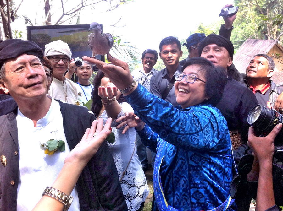 Pushumas Kemenhut, Bandung : Menteri Lingkungan Hidup dan Kehutanan Siti Nurbaya, Guruh Soekarnoputra, dan Anggota Dewan Pertimbangan Presiden (Wantimpres) Jan Darmadi serta Kapolda Jawa Barat M. Iriawan menerima penghargaan dari BOMA (Baresan Olot Masyarakat Adat) Jawa Barat atas perhatian terhadap masyarakat adat khususnya Jawa Barat, Sabtu (2/5) di acara Festival Budaya dalam menyambut para tamu mahasiswa se-Asia Afrika berkaitan dengan acara KAA yang berlangsung di lokasi Ecotourisme Aman Santosa Bandung.