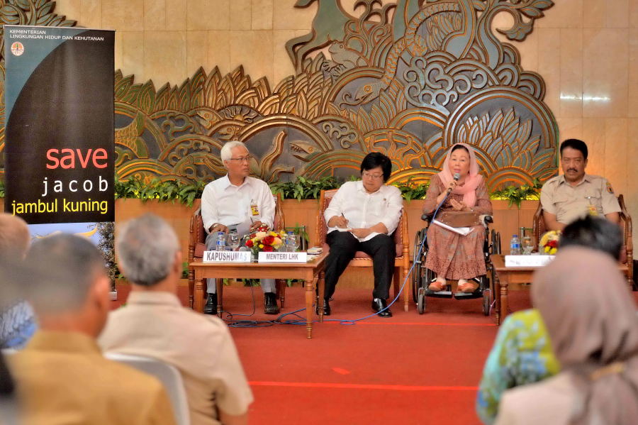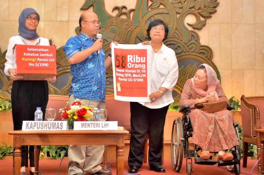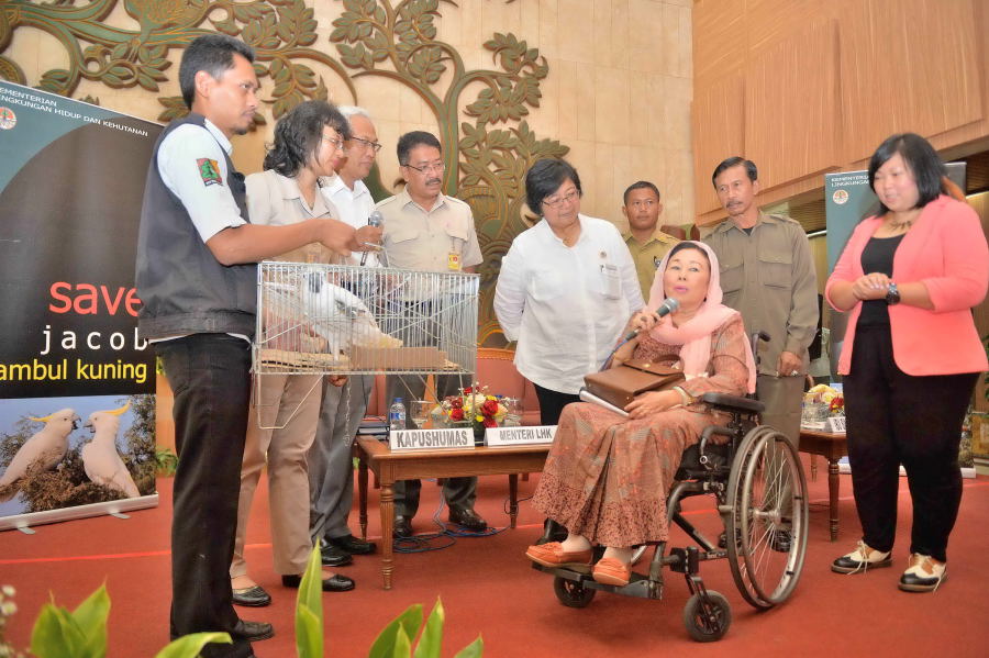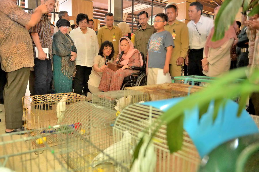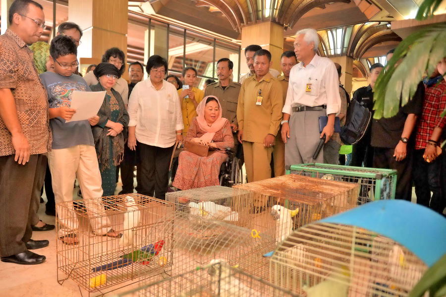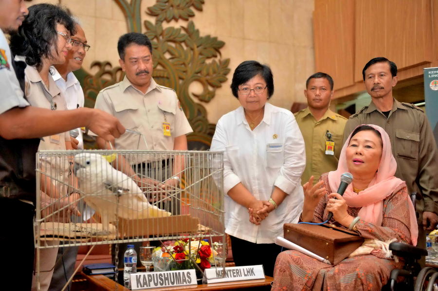 Ibu Sinta Nuriah Abdurrahman Wahid Menyerahkan Kakatua di Posko KLHK