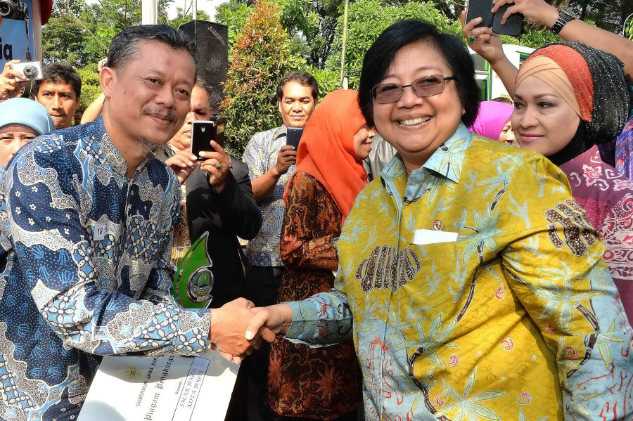 Pushumas Kemen-LHK , Bandung : Menteri Lingkungan Hidup dan Kehutanan, Dr. Ir. Siti Nurbaya, MSc, hadir dalam Peringatan Hari Lingkungan Hidup yang diselenggarakan oleh Pemerintah Provinsi Jawa Barat, Sabtu (13/6) di Gedung Sate, Bandung. Dalam acara ini, Wakil Gubernur Jawa Barat, Deddy Mizwar memberikan Penghargaan Raksa Prasada yaitu penghargaan bidang lingkungan hidup kepada 167 sekolah kategori sekolah berbudaya lingkungan dan 5 pemerintah kabupaten/kota Penyusun Status Lingkungan Hidup Daerah.