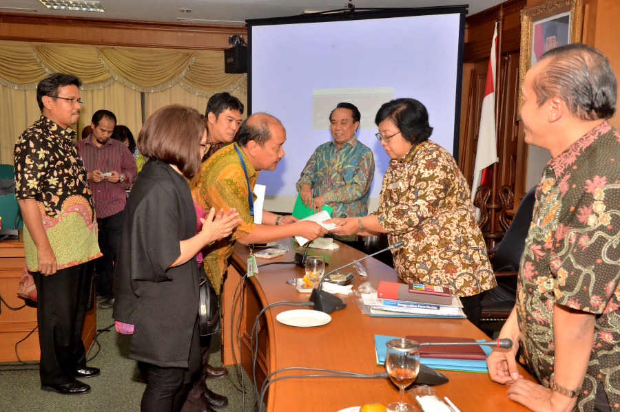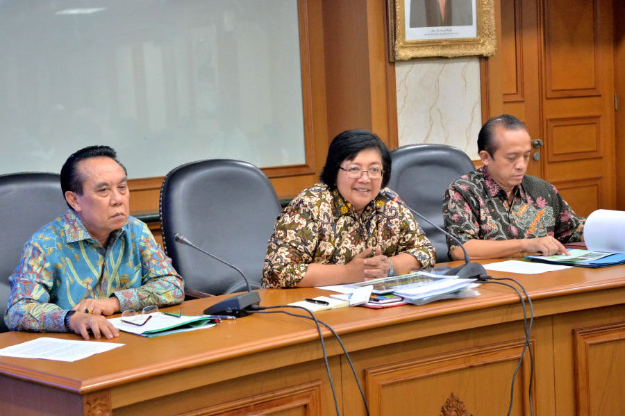 Biro Humas Kemen LHK, Jakarta : Menteri Lingkungan Hidup dan Kehutanan Siti Nurbaya bertemu dengan para pengusaha di bidang kehutanan yang diinisiasi oleh Asosiasi Pengusaha Hutan Indonesia (APHI) , Kamis (25/6) di Gedung Pusat Kehutanan Manggala Wanabakti Jakarta. Pada kesempatan tersebut APHI menyampaikan berbagai persoalan dan progres usaha di bidang kehutanan khususnya masalah industri hulu sebagai bahan baku industri kehutanan.