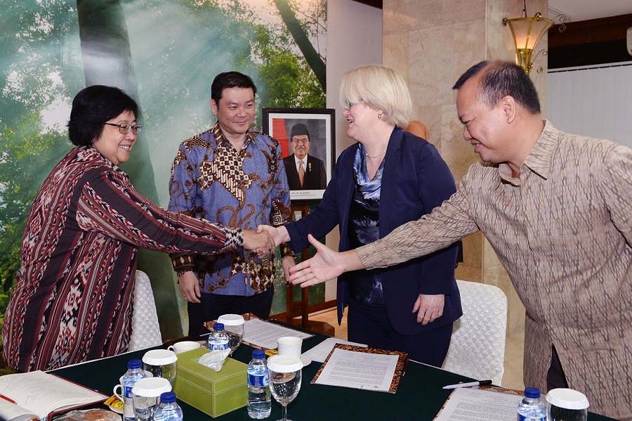 Biro Humas KemenLHK, Jakarta : Badan Restorasi Gambut (BRG) yang telah dibentuk Presiden sejak tanggal 6 januari 2016 mulai mempercepat geraknya. Bersama dengan dukungan penuh yang diberikan oleh Kementerian LHK, BRG mulai membangun jaringan kerjasama dengan pemerintah, sektor swasta, masyarakat sipil serta mitra internasional. Menteri LHK, Siti Nurbaya dan Kepala BRG, Nazir Foead , mengundang mitra internasional The David and Lucile Packard Foundation (Packard Foundation/DLPF) dan The Climate dan Land Use Alliance (CLUA), untuk bersama-sama memberikan dukungan mensukseskan kerja BRG dalam merestorasi lahan gambut di Indonesia , Jumat (29/1) Bertempat di Kantor Kementerian Lingkungan Hidup dan Kehutanan (KLHK).