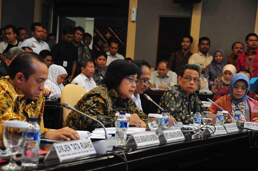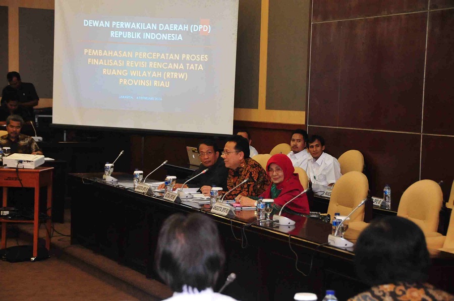 Biro Humas Kementerian LHK, Jakarta : Menteri Lingkungan Hidup dan Kehutanan Siti Nurbaya bersama Ketua Dewan Perwakilan Daerah (DPD) RI Irman Gusman, Sekretaris Daerah Provinsi Riau, Walikota Pekanbaru Firdaus, perwakilan dari Kementeian Agraria dan Tata Ruang/Badan Pertanahan Nasional, Kementerian Bappenas, DPRD Prov. Riau dan beberapa Bupati dari Provinsi Riau membahas percepatan proses revisi rencana tata ruang wilayah provinsi (RTRWP) Riau, Kamis (4/2) di Gedung Sekretariat DPD RI, Jakarta.