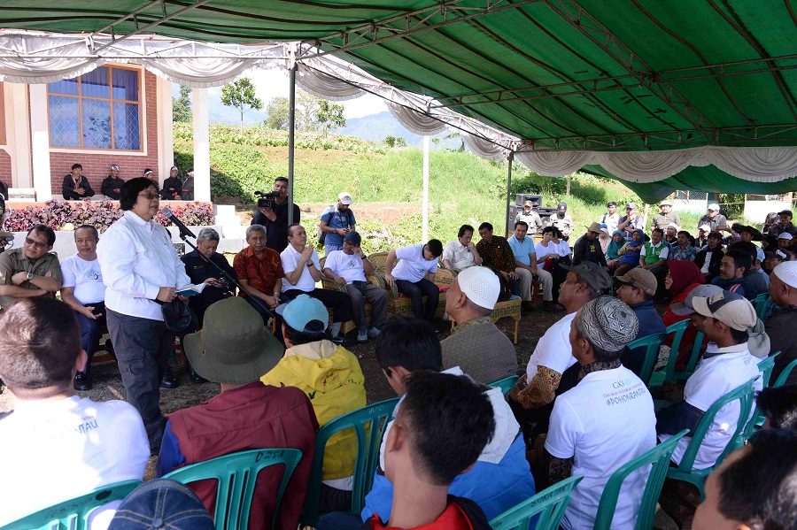 Biro Humas KemenLHK, Cianjur : Menteri Lingkungan Hidup dan Kehutanan Siti Nurbaya menanam Pohon Rantau dalam rangka Cinta Kasih untuk Indonesia, Minggu (14/2) di Desa Sukatani, Kec. Pacet, Kab. Cianjur Prov. Jawa Barat. Program Pohon Rantau ini merupakan bentuk lain dan kelanjutan dari Program sebelumnya yaitu Desa Sarongge. Intinya adalah mendorong, membimbing dan memberikan insentif kepada masyarakat di sekitar Taman Nasional Gunung Gede Pangrango untuk menanam pohon dan memelihara lingkungan melalui kegiatan agro forestry, agar masyarakat tidak lagi masuk kawasan taman nasional dan merusak hutan.