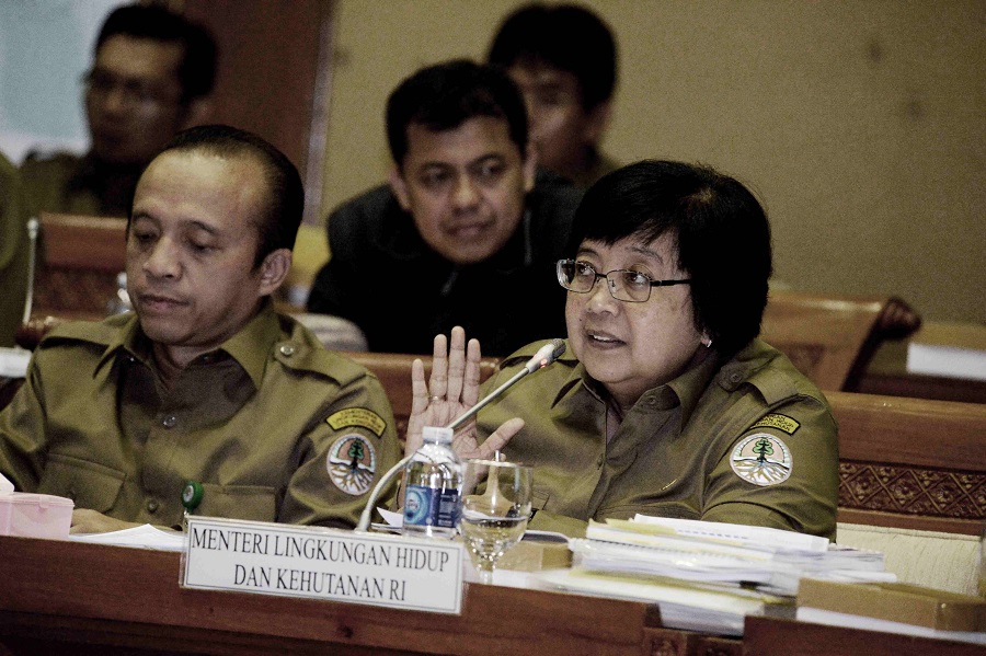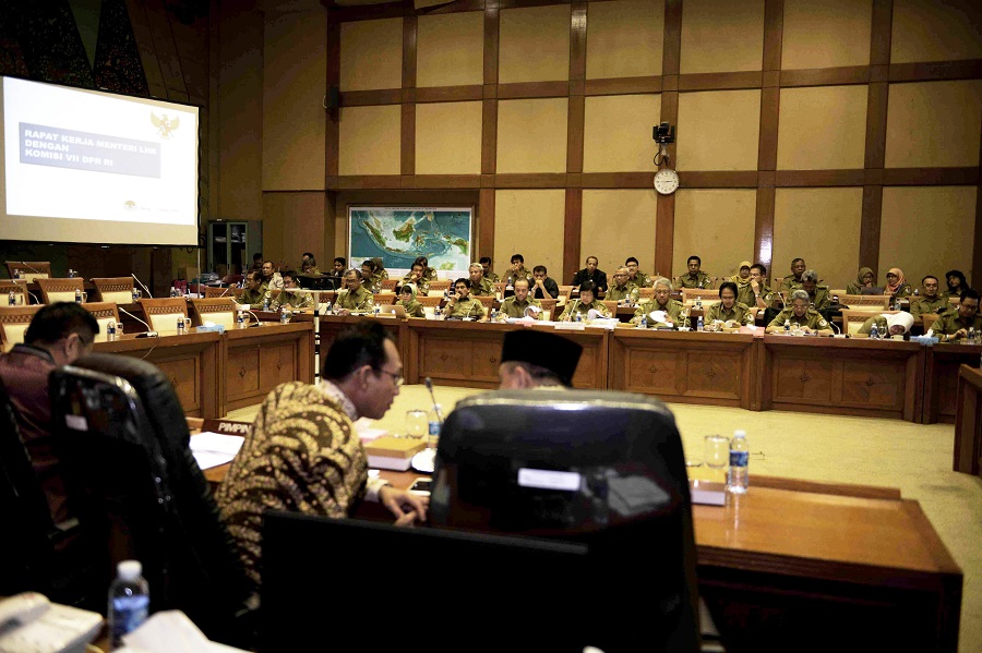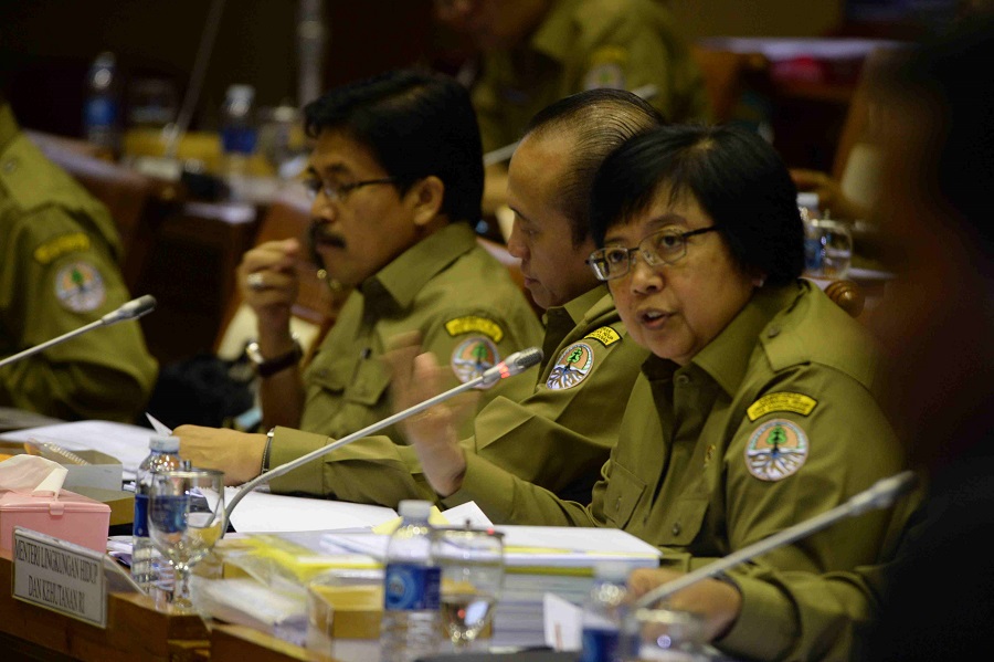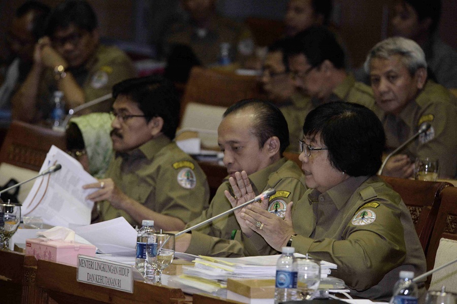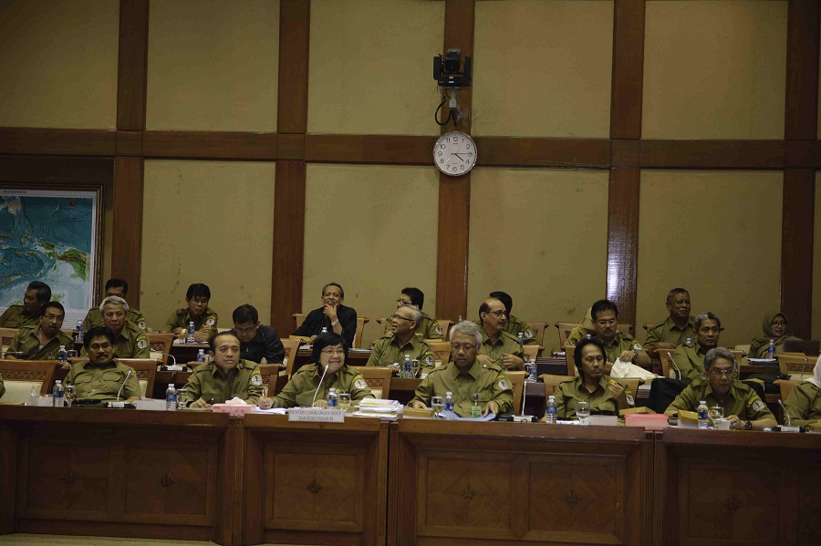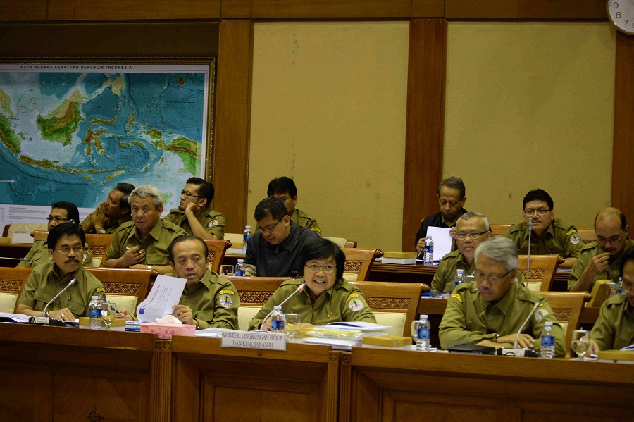 Biro Humas KemenLHK, Jakarta : Menteri Lingkungan Hidup dan Kehutanan Siti Nurbaya melakukan rapat kerja dengan Komisi VII Dewan Perwakilan Rakyat Republik Indonesia (DPR RI) membahas hasil audit Badan Pemeriksa Keuangan Republik Indonesia (BPK RI) tahun anggaran 2014, Selasa (16/2) di Gedung DPR, Senayan