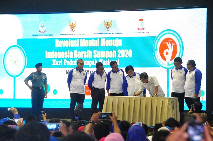 Biro Humas KemenLHK, Makasar : Wakil Presiden RI Jusuf Kalla mengajak masyarakat untuk menjadikan sampah yang tadinya beban menjadi teman yang mendatangkan manfaat. Ajakan tersebut disampaikan Wapres Jusuf Kalla di hadapan sekitar 10.000 warga Makassar saat peringatan Hari Peduli Sampah Nasional, Sabtu (5/3) di Makassar. Acara tersebut dihadiri oleh Menteri Lingkungan Hidup dan Kehutanan Siti Nurbaya, Menteri Dalam Negeri Tjahjo Kumolo, Menteri Koperasi dan UKM Puspayoga, Menteri Agraria dan Tata Ruang Ferry Mursyidan, Gubernur Sulawesi Selatan beserta jajarannya dan 17 Walikota/Wakil Walikota yang turut hadir untuk menandatangani komitmen bersama penerapan kebijakan kantong plastik berbayar.