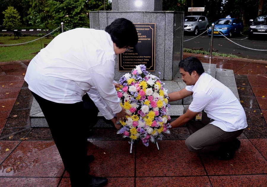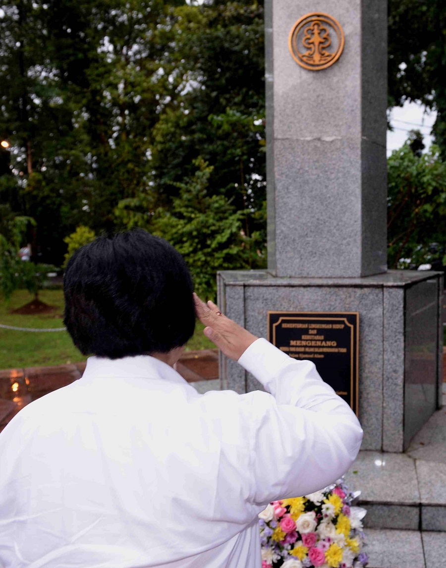 Biro Humas KLHK, Bogor : Menteri Lingkungan Hidup dan Kehutanan Ibu Siti Nurbaya memimpin Renungan Suci dalam Rangka Peringatan Hari Bakti Rimbawan ke-33 tahun 2016 , Kamis (17/3) di Kampus Litbang LHK Gunung Batu Ciomas Bogor.