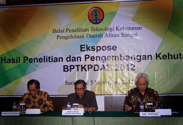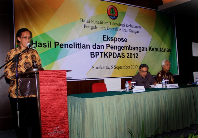 Acara dihadiri oleh Kepala BPTKPDAS Solo, Ir. Bambang Sugiarto, MP, Direktur Perencanaan dan Evaluasi Pengelolaan DAS-Ditjen BPDASPS Dr. Eka Widodo Soegiro sebagai Keynote Speech, serta Kepala Pusat Litbang Perum Perhutani di Cepu. EKspose diikuti sekitar 120 peserta dari berbagai kalangan seperti pemerintah daerah, BUMN, swasta, peneliti dan akademisi.
