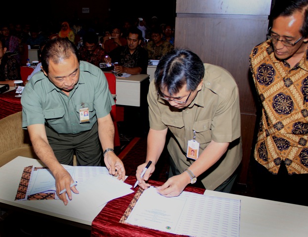 Pada kesempatan itu, dilakukan penandatangan Perjanjian Kerjasama antara Pusat Litbang Konservasi dan Rehabilitasi (Puskonser) dengan Puslitbang Perhutani Cepu tentang Pemanfaatan Kawasan Hutan Arcamanik, Cikole, Gunung Dahu, dan Pasirawi. (rd) (Foto: BPTKPDAS/Rd/12)