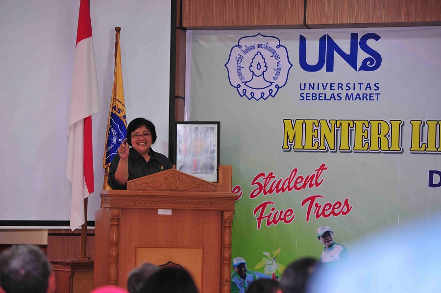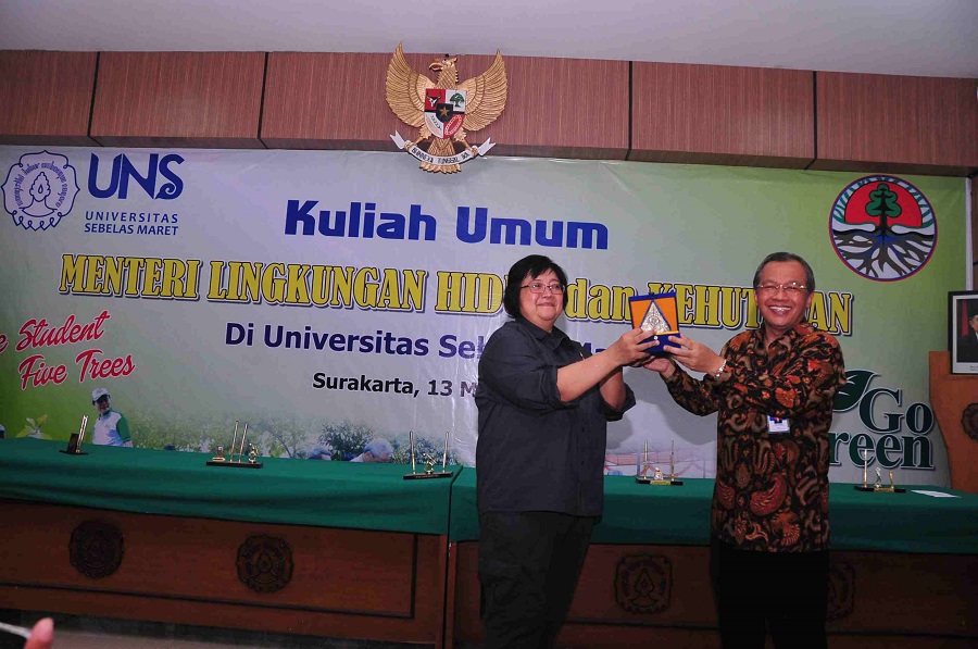 Biro Humas KemenLHK, Surakarta : Menteri Lingkungan Hidup dan Kehutanan Siti Nurbaya memberikan kuliah umum, Jum