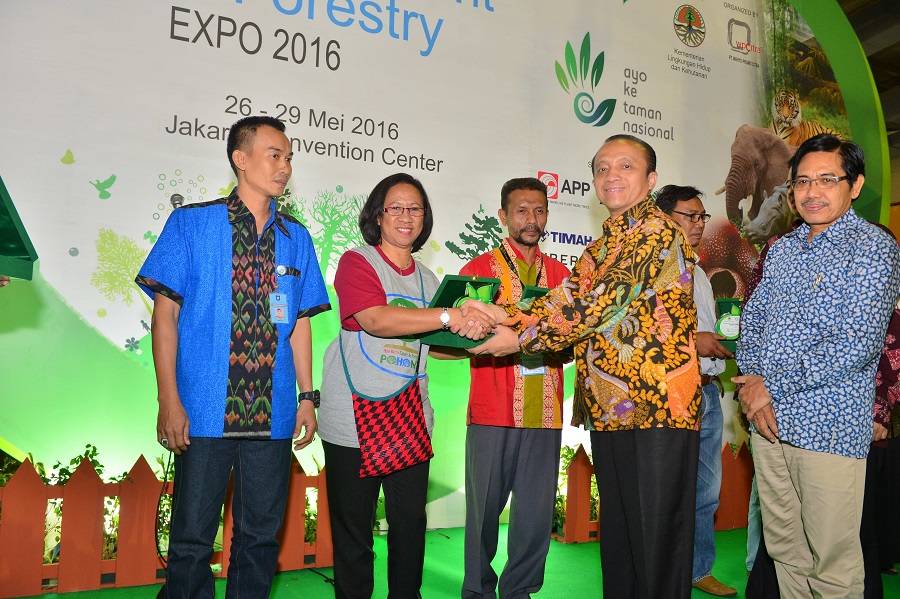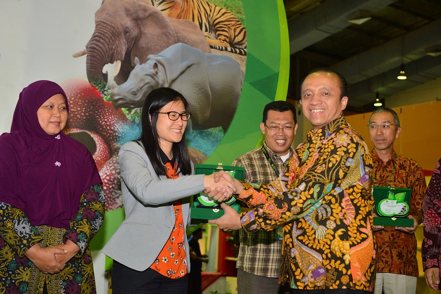 Foto 10-15 : Sekretaris Jenderal KLHK, Bambang Hendroyono memberikan hadiah kepada pemenang stan terbaik pada pameran Indogreen Environment & Forestry Expo 2016.
