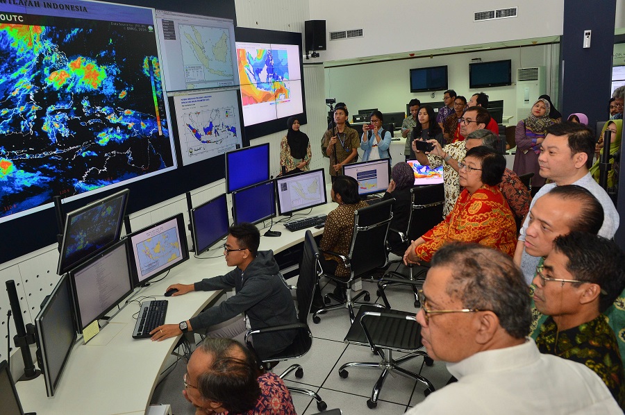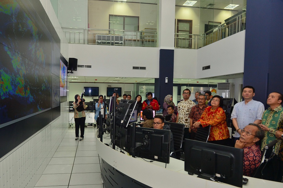 Biro Humas KementerianLHK, Jakarta : Menteri Lingkungan Hidup dan Kehutanan, Siti Nurbaya kunjungi kantor Badan Meteorologi Klimatologi dan Geofisika (BMKG), Jumat(10/6) di Jakarta. Kunjungan ini dalam rangka mensinergikan kerja Kementerian LHK dengan BMKG agar semakin memperkuat kerja pengendalian perubahan iklim nasional. Sebagai Lembaga Pemerintah Non Kementerian, BMKG memiliki kemampuan dalam mengumpulkan dan menganalisis data di bidang meteorologi, klimatologi dan geofisika. Ini sangat berguna agar kerja pengendalian perubahan iklim nasional menjadi semakin baik.
