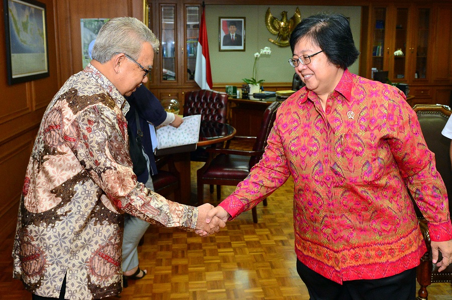 Biro Humas KemenLHK, Jakarta : Menteri Lingkungan Hidup dan Kehutanan, Dr. Siti Nurbaya, pagi tadi Kamis (16/6) di Ruang Kerja Menteri KLHK bertemu dengan Gubernur Aceh dan Greenomics Indonesia, membahas tindak lanjut moratorium sawit di Kawasan Ekosistem Leuser Aceh, yang telah kami deklarasikan bersama pada 19 April 2016 lalu, dan sudah disampaikan dalam pidato Menteri LHK mewakili Presiden RI di UN ketika menandatangani Paris Agreement di New York. Moratorium sawit dan tambang di Kawasan Ekosistem Leuser merupakan tindak lanjut arahan Presiden Jokowi untuk moratorium ekspansi izin baru dan review izin-izin yang sudah ada.