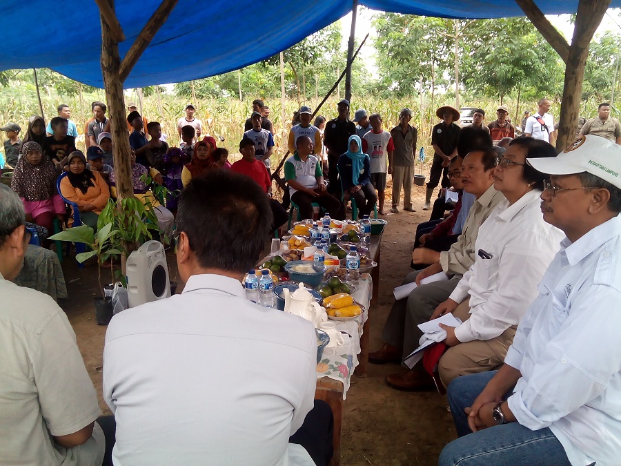 Biro Humas Kementerian LHK, Lampung : Guna melihat keberhasilan pengelolaan hutan oleh masyarakat, dan mendengarkan secara langsung kendala yang dihadapi serta untuk mencarikan solusi konkrit, Menteri Lingkungan Hidup dan Kehutanan Siti Nurbaya berkunjung ke 2 (dua) kelompok tani hutan (KTH), Sabtu (16/7) di Provinsi Lampung, Dalam kunjungan kerja sehari ini, Siti Nurbaya didampingi Direktur Jenderal Planologi Kehutanan dan Tata Lingkungan (PKTL) San Afri Awang, Direktur Jenderal Perhutanan Sosial dan Kemitraan Lingkungan (PSKL) Hadi Daryanto, beberapa pejabat eselon II Kementerian Lingkungan Hidup dan Kehutanan (KLHK) dan perwakilan Unit Pelaksana Teknis (UPT) KLHK di wilayah Lampung. Turut hadir Kepala Dinas Kehutanan Provinsi Lampung sekaligus menjabat Plt. Sekretaris Daerah Prov. Lampung, Sutono, Kepala Bappeda serta pejabat lainnya.