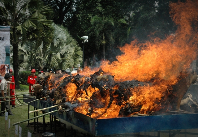 Acara pemusnahan barang bukti ini dihadiri oleh perwakilan Bareskrim Mabes Polri, Kementerian Lingkungan hidup dan para LSM. (foto pushumas/Zaky/Rd/12)