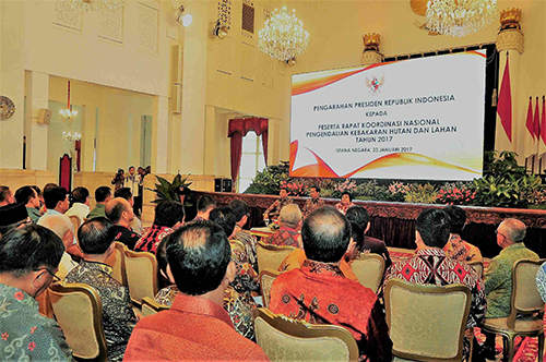 Jakarta, Biro Humas Kementerian LHK, Senin, 23 Januari 2017. Presiden Republik Indonesia, Joko Widodo, mengingatkan bahwa pada tahun 2015 Indonesia mengalami kebakaran hutan dan lahan (Karhutla) yang luar biasa. Akibat Karhutla, Indonesia mengalami kerugian ekonomi mencapai Rp. 220 triliun, dan 504.000 orang mengalami gangguan kesehatan, serta 2,6 juta ha habitat keanekaragaman hayati hilang yang kerugiannya tidak bisa dihitung secara ekonomi.