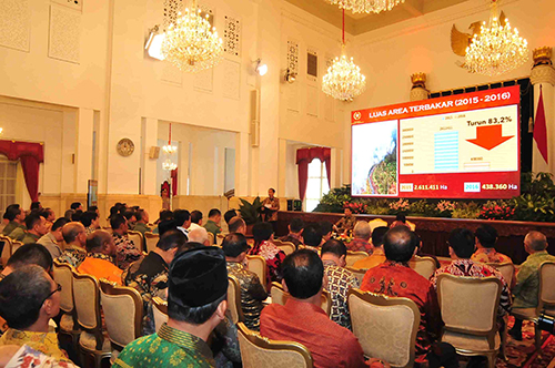 Berkat upaya penanganan Karhutla sejak dini oleh semua pihak, pada tahun 2016 Indonesia berhasil menurunkan jumlah Hotspot sebesar 82,14% (Sumber Satelit NOAA) atau 94,58% (Sumber Satelit Terra Aqua); menurunkan luas kebakaran sebesar 83,2% yaitu 438.360 Ha, dibandingkan tahun 2015 yang mencapai 2.611.411 Ha; tidak ada kejadian asap lintas batas regional; dan tidak satupun Gubernur yang menetapkan status tanggap darurat di tahun 2016.