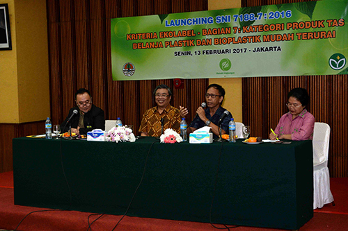 Jakarta, Biro Humas Kementerian Lingkungan Hidup dan Kehutanan, Senin, 13 Februari 2017. Untuk mendukung kebijakan pengurangan sampah plastik dan sistem akreditasi dan sertifikasi ekolabel, Kementerian Lingkungan Hidup dan Kehutanan (KLHK) meluncurkan Standard Nasional Indonesia (SNI) 7188.7:2016 Kriteria ekolabel