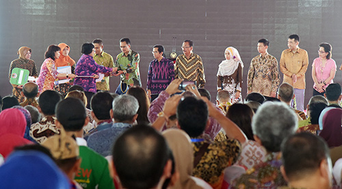 Penyerahan bantuan secara simbolis oleh Menteri Lingkungan Hidup dan Kehutanan kepada Walikota Surabaya berupa motor sampah, sepeda dan tempat sampah terpilah.