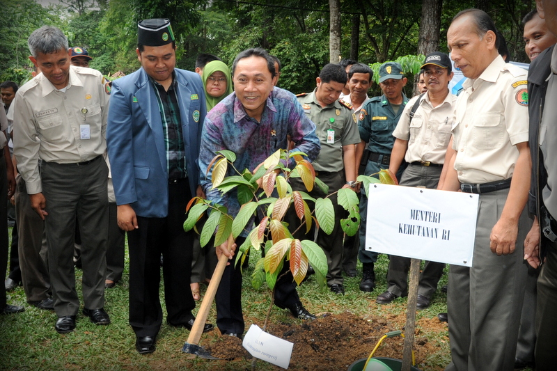 Selanjutnya, Menhut melakukan penanaman pohon kenangan, Pohon Bulian, di Taman Wisata Alam Punti Kayu