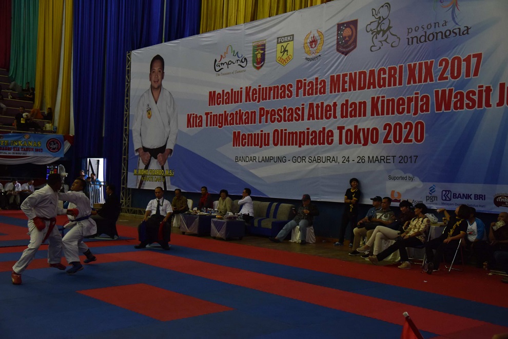 Mennteri Lingkungan Hidup dan Kehutanan Siti Nurbaya menghadiri Kejuaraan Nasional (Kejurnas) Karate Piala Menteri Dalam Negeri XIX Tahun 2017 di Gedung Olah Raga (GOR) Saburai, Bandar Lampung,Lampung, 26/03/2017.