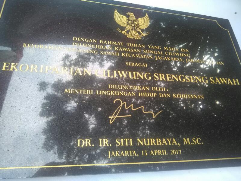 Sebagai upaya pelestarian dan perbaikan kualitas air Daerah Aliran Sungai (DAS) Ciliwung, Kementerian Lingkungan Hidup dan Kehutanan (KLHK) bersama-sama Kementerian Pekerjaan Umum dan Perumahan Rakyat (PUPERA), Pemerintah Provinsi DKI Jakarta, Pemerintah Kota Jakarta Selatan, dunia usaha dan komunitas masyarakat, membangun Ekoriparian Ciliwung Srengseng Sawah. Inisiasi yang dimulai setahun yang lalu ini, secara resmi dikukuhkan oleh Menteri LHK, Siti Nurbaya di Sempadan Sungai Ciliwung, Kelurahan Srengseng Sawah, Kecamatan Jagakarsa, Kota Jakarta Selatan (15/04/2017).
