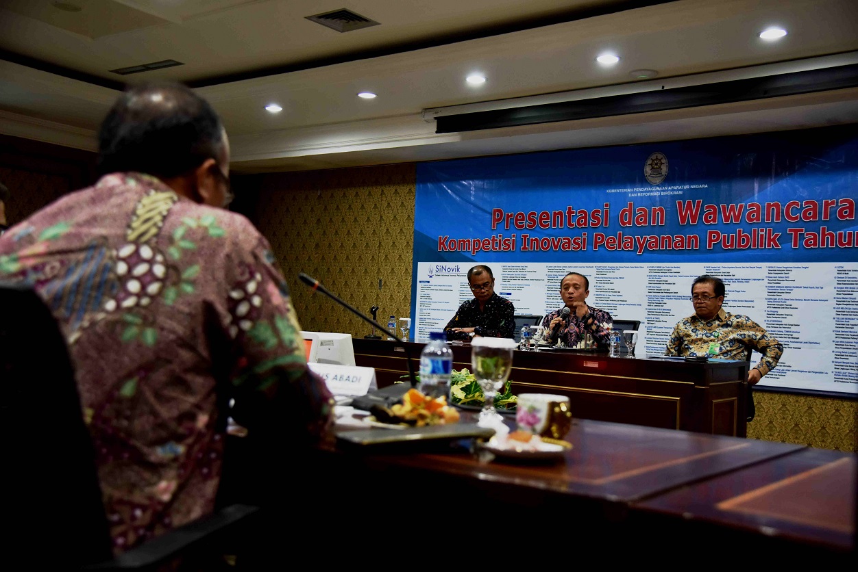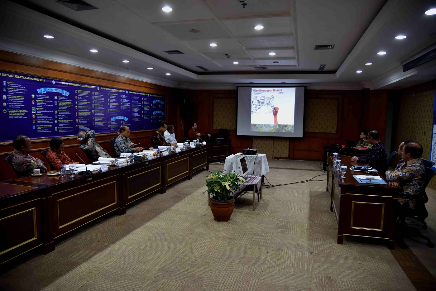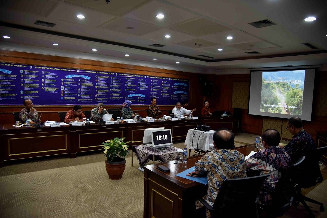 Sekretaris Jenderal Kementerian LHK Bambang Hendroyono Menyampaikan Presentasi dan Wawancara Kompetisi Inovasi Pelayanan Publik Tahun 2017, di Kantor Kementerian Pendayagunaan Aparatur Negara dan Reformasi Birokrasi (Kemen PAN dan RB), Jumat, 21/04/2017.