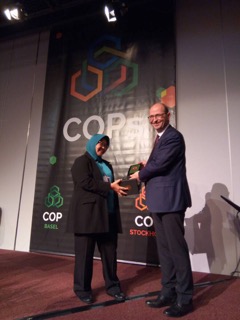 Indonesia dan Swiss berinisiatif memberi penghargaan kepada delapan negara yang baru meratifikasi Ban Amendment, atau larangan pengiriman limbah bahan beracun berbahaya (B3) dari negara maju ke negara berkembang. Kedelapan negara tersebut yaitu Antigua dan Barbuda, Afrika Selatan, El Savador, Iran, Jamaika, Nigeria, Republik Guinea dan Seychelles. Penghargaan ini diberikan saat Konferensi Konvensi Basel, Rotterdam dan Stockholm (COP