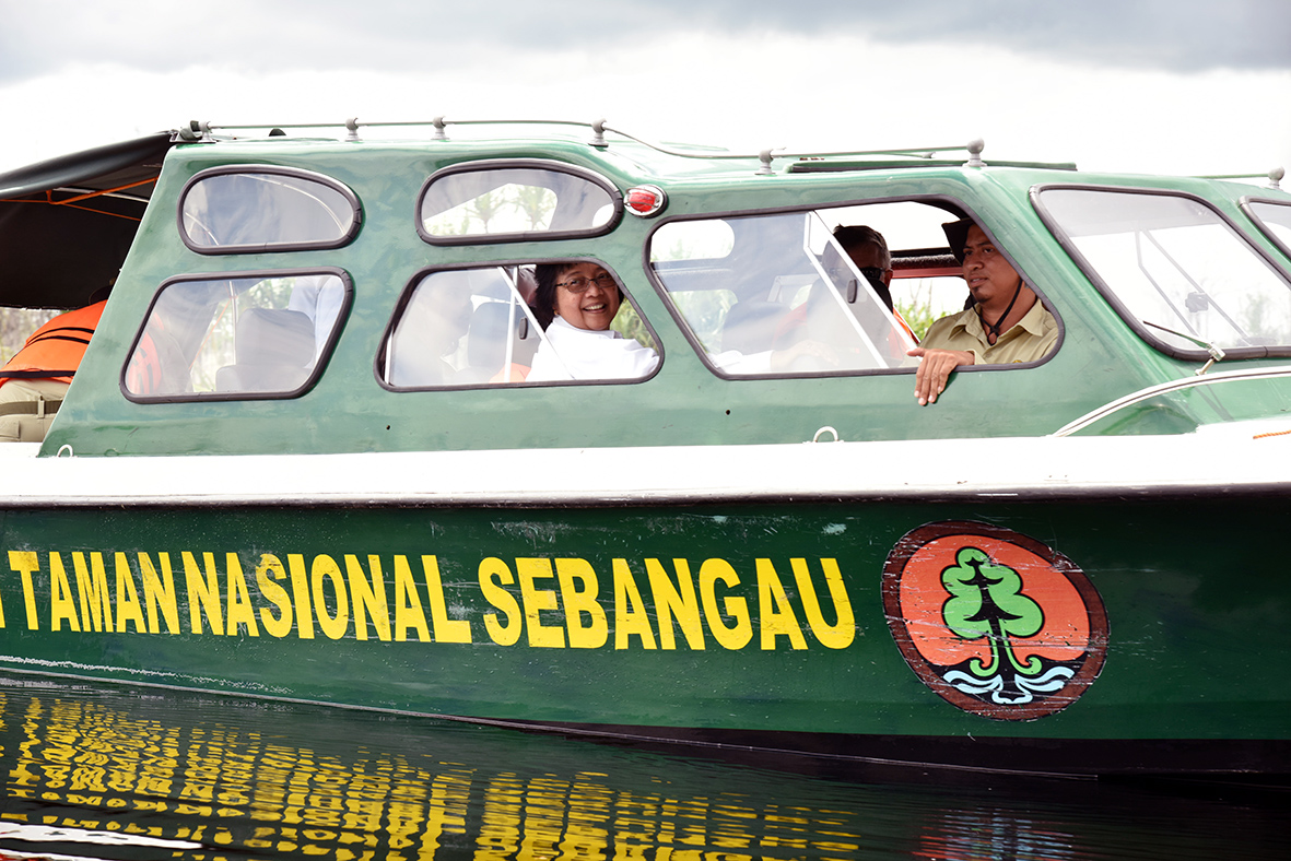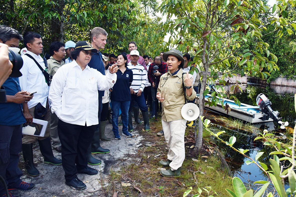Menteri LHK Siti Nurbaya mengajak Direktur Eksekutif UN Environment, Erik Solheim berkunjung ke Taman Nasional Sebangau di Kalimantan Tengah, (13/05/2017). Kunjungan ini untuk memberikan gambaran menyeluruh kepada masyarakat internasional tentang pengelolaan taman nasional dan gambut di Indonesia