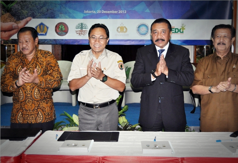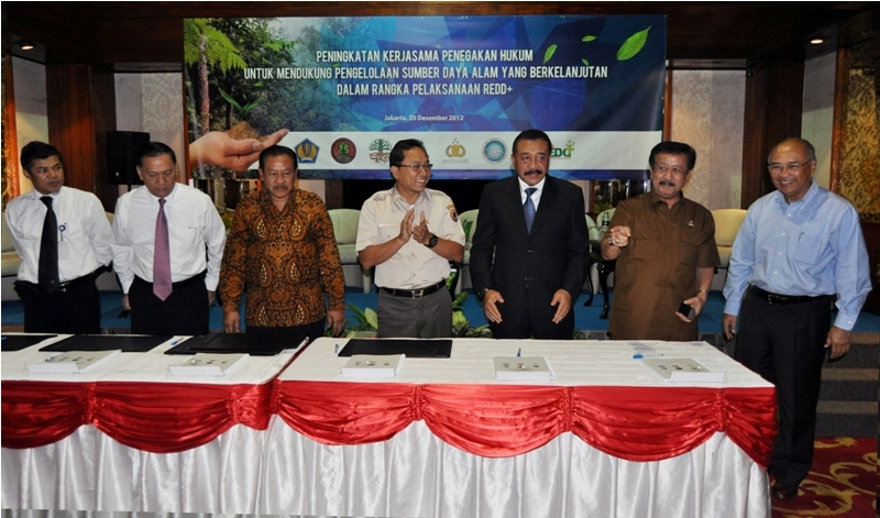 Menteri Kehutanan Zulkifli Hasan menyambut baik nota kesepakatan ini, karena Kementerian Kehutanan tidak lagi bekerja sendiri. Enam lembaga negara penandatangan MoU dan Satgas Persiapan Kelembagaan REDD+ bertekad menjaga hutan dengan bekerjasama dalam penegakan hukum terhadap kejahatan kehutanan dan pengelolaan sumber daya alam yang merupakan kejahatan lintas sektor. Pedoman penanganan perkara ini akan menjadi acuan untuk meningkatkan kordinasi aparat penegak hukum, sekaligus menjadi pintu masuk bagi para jaksa dan polisi lingkungan untuk melakukan tindakan hukum. (foto Pushumas/toy/rd/12)