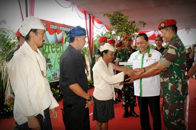 Pushumas Kemenhut, Jakarta: Menteri Kehutanan Zulkifli Hasan membagikan 4.000 bibit Jati Utama Nusantara (JUN) kepada Grup I Kopassus Serang Banten, yang diterima secara simbolis oleh Komandan Jenderal Komando Pasukan Khusus (Danjen Kopassus), Mayjen TNI Agus Sutomo. Pada kesempatan itu Danjen Kopasus juga membagikan 5.000 bibit tanaman hasil pembibitan Grup I Kopasus kepada masyarakat Baduy Dalam dan Baduy Luar untuk ditanam di daerah mereka.