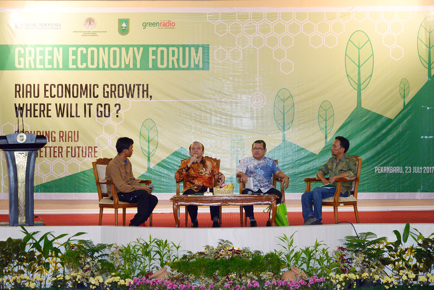 Sejalan dengan hal tersebut, Green Radio Pekanbaru bekerjasama dengan Kementerian Lingkungan Hidup dan Kehutanan, Pemerintah Provinsi Riau dan Bank Indonesia menyelenggarakan Green Economy Forum pada Minggu (23/7/2017). Forum ini mengusung tema