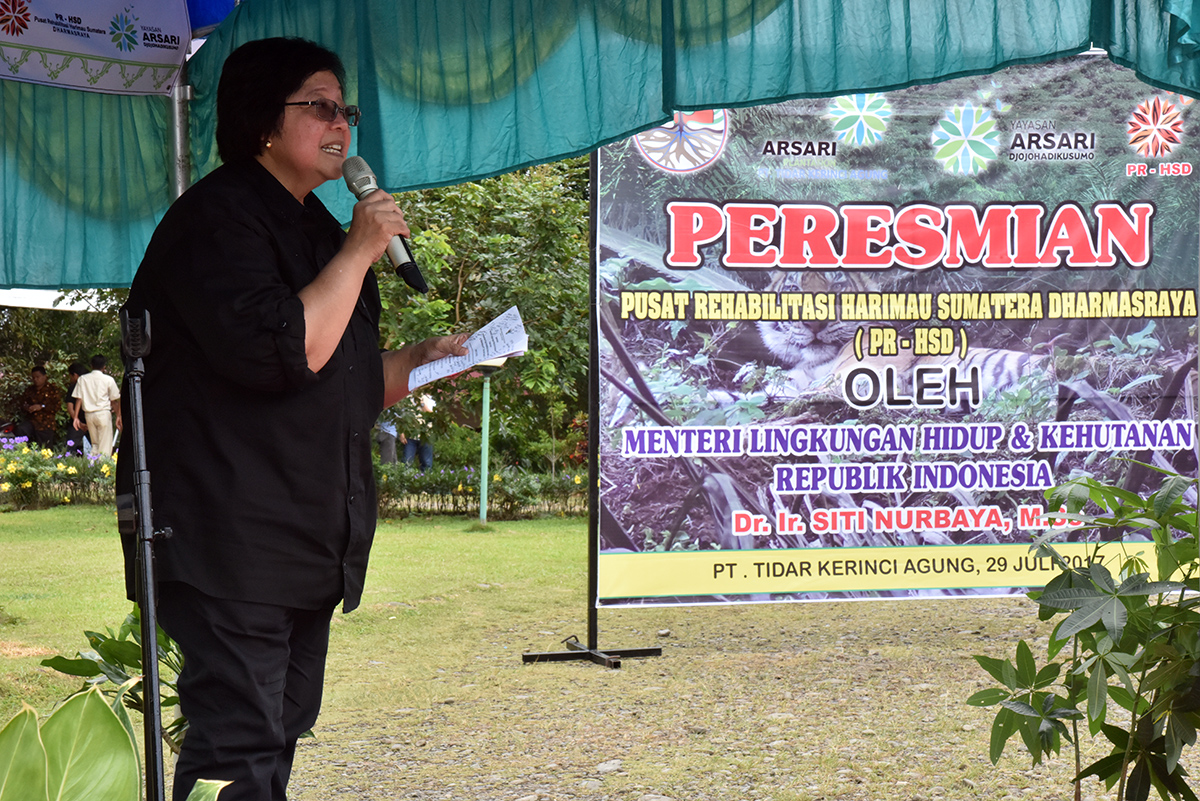 Memperingati Hari Harimau Global yang jatuh pada tanggal 29 Juli setiap tahunnya, Menteri Lingkungan Hidup dan Kehutanan (LHK), Siti Nurbaya meresmikan Pusat Rehabilitasi Harimau Sumatera di Dharmasraya (PRHSD) Sabtu 29 Juli 2017. PRHSD ini berlokasi di PT. Tidar Kerinci Agung (PT. TKA) di Dharmasraya, Sumatera Barat dengan total area rehabilitasi seluas 10 hektar. PRHSD merupakan Pusat Rehabilitasi pertama hasil gagasan pihak swasta. "Ini yang pertama kali, saya meresmikan pusat rehabilitasi yang digagas oleh swasta.", ujar Menteri Siti dalam pidatonya.