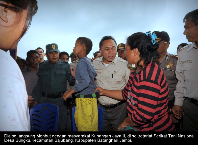 Dalam Temu wicara itu Menhut didampingi Sekjen Kemenhut Hadi Daryanto, Dirjen Pengelolaan Hutan dan Konservasi Alam (PHKA) Darori, Dirjen Badan Usaha Kehutanan (BUK) Bambang Hendroyono, Gubernur Provinsi Jambi, H.Hasan Basri Agus, Kapolda Jambi, Adi Husen K , Staf Khusus Presiden Andi Arif, Anggota Unit Kerja Presiden Bidang Pengawasan dan Pengendalian Pembangunan (UKP4) Mas Achmad Santosa, Satgas REDD+, Anggota DPR RI , Danrem 042/Garuda Putih, Kol.Inf Eko Budi S., komisioner dari Komnas HAM, Wakil Bupati Batanghari, Sinwan; Kapolres Batanghari; Dandim Batanghari; Sekda Batanghari, Drs.H.Ali Redo; Kepala Dinas Kehutanan Provinsi Jambi; pejabat terkait dari Pemerintah Kabupaten Batanghari; Camat Bajubang; Kepala Desa Bungku; Kepala Dusun Kunangan Jaya II; pihak PT WN dan PT AAS; serta para pengurus SerikatTani Nasional.