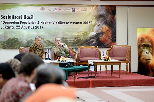 Jakarta, Kementerian Lingkungan Hidup dan Kehutanan, Selasa, 22 Agustus 2017. Berdasarkan hasil Population and Habitat ViabilityAssessment (PHVA) Orangutan tahun 2016, saat ini diperkirakan terdapat 71.820 individu Orangutan di Pulau Sumatera dan Borneo (Kalimantan, Sabah dan Serawak), pada habitat seluas 17.460.000 hektar. Populasi tersebut tersebar ke dalam 52 meta populasi (kelompok terpisah/kantong populasi), dan 38% diantaranya diprediksi akan lestari (viable) dalam 100