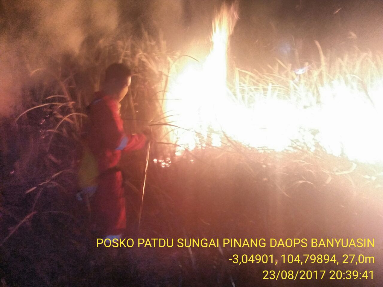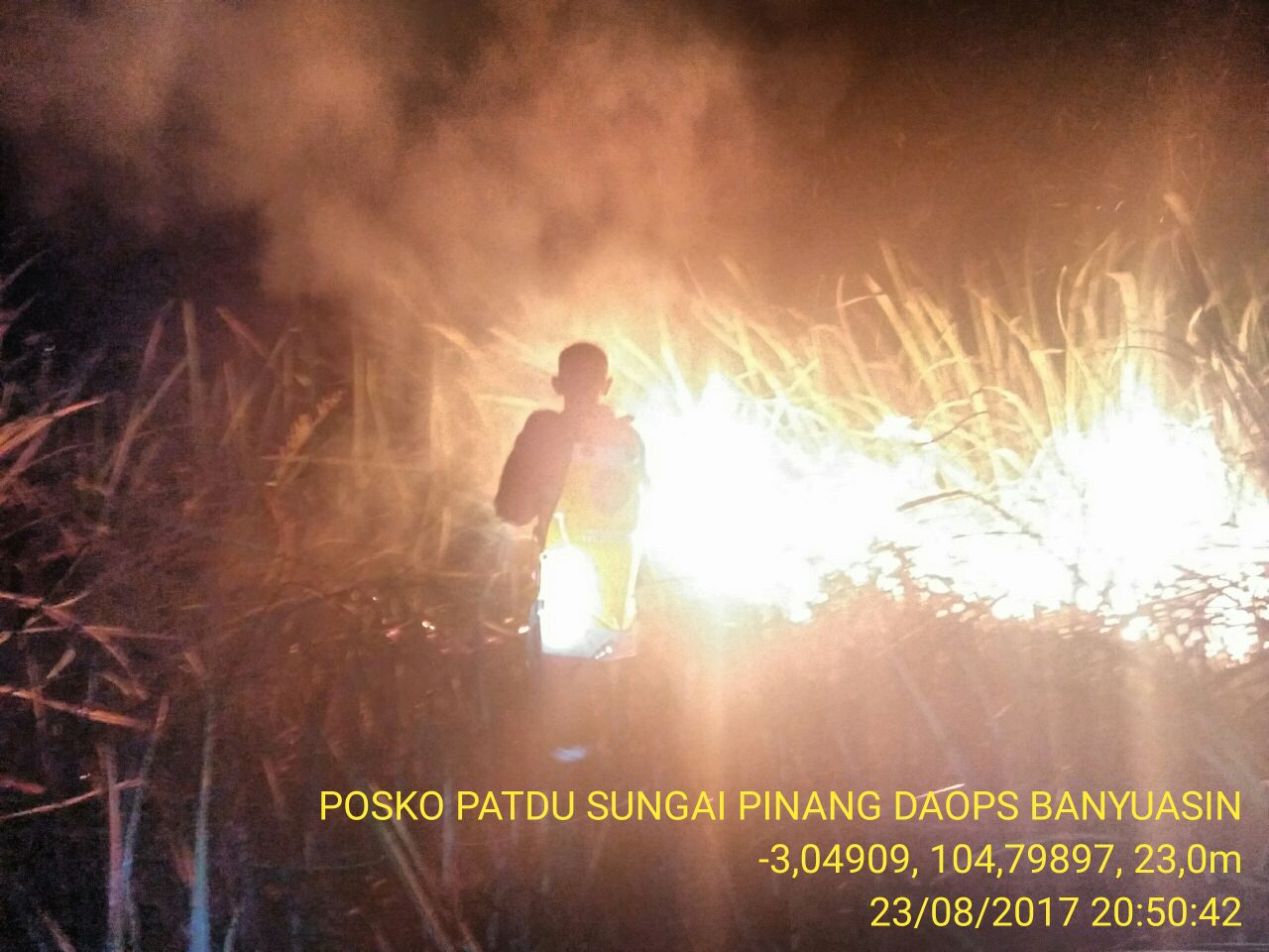 Tim terpadu di wilayah kerja Manggala Agni Daops Banyuasin masih terus melakukan upaya pemadaman. Lokasi karhutla yang dipadamkan pada titik koordinat S : 03.14397