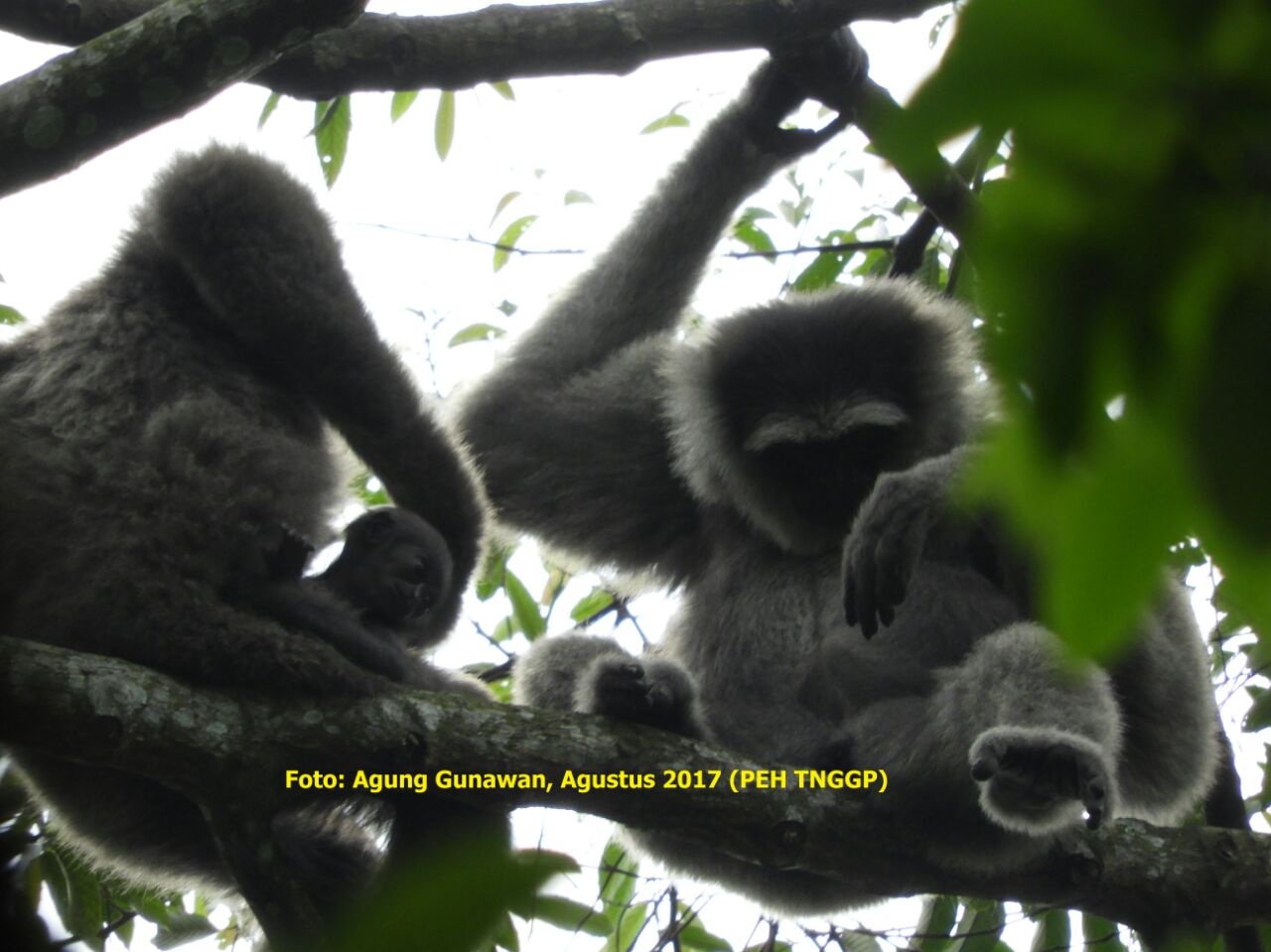 Jakarta, Kementerian Lingkungan Hidup dan Kehutanan, Sabtu, 26 Agustus 2017. Satu lagi kabar gembira bagi Kementerian Lingkungan Hidup dan Kehutanan (KLHK), sebagaimana disampaikan oleh Plt. Kepala Balai Besar Taman Nasional Gunung Gede Pangrango (TNGGP), Adison (25/08/2017), bahwa telah ditemukan satu individu muda/anakan pada satu kelompok/keluarga Owa Jawa, pada saat monitoring oleh Pengendali Ekosistem Hutan (PEH) Balai Besar TNGGP.
