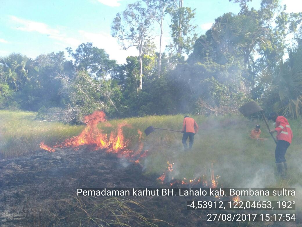 Upaya pemadaman kebakaran hutan dan lahan (karhutla) kembali dilakukan oleh Manggala Agni pada hari Minggu (27/08/2017), kali ini lokasi yang terbakar berada di kawasan Taman Nasional Rawa Aopa Watumohai, Provinsi Sulawesi Tenggara, tepatnya di Blok Huan Lahalo, Kecamatan Lantari Jaya, Kabupaten Bombana.