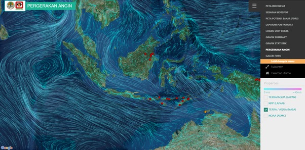 Sedangkan Satelit TERRA AQUA (NASA) (confidence level ?80%) mencatat 20 hotspot, dengan jumlah hotspot terbanyak di Nusa Tenggara Timur (9 titik), disusul Kalimantan Timur (7 titik), dan Kalimantan Utara serta Nusa Tenggara Barat, masing-masing 2 titik. Jumlah ini hanya selisih satu titik dengan yang ditunjukkan oleh Satelit TERRA AQUA (LAPAN) (confidence level ?80%), serta penyebaran lokasi yang sama.