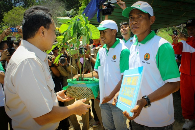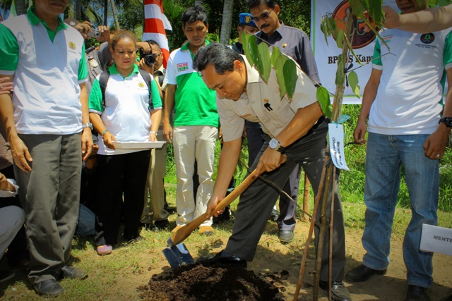 Pushumas Kemenhut, Jakarta: Pada rangkaian kegiatan kunjungan kerjanya di Kalimantan Barat, dan dalam rangka menyukseskan gerakan penanaman 1 Milyar Pohon, Menteri Kehutanan Zulkifli Hasan  secara simbolis melakukan penanaman di kawasan wisata Sinka Island Singkawang Kalimantan Barat, Selasa (29/1). Pada kesempatan itu Menteri Kehutanan mengajak semua kalangan menggalakkan gerakan menanam pohon untuk memperbaiki kondisi lingkungan masing-masing.  Dalam sambutannya Menhut juga mengungkapkan keprihatinannya akan adanya penyelundupan paruh burung Enggang yang merupakan satwa khas Kalimantan Barat  yang baru-baru ini terungkap. Upacara penanaman dihadiri pula oleh Asisten 1 Setda Prov. Kalbar,  Wakil Walikota Singkawang Abdul Mutalib dan Wakil Ketua DPR-RI Sukiman. (Foto Pushumas: dion/rd/13)