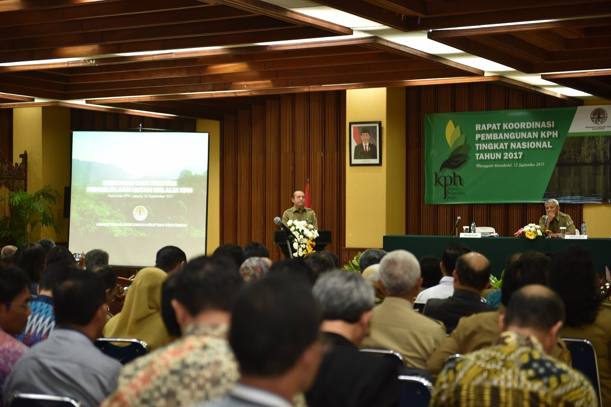 Mendukung percepatan proses kelembagaan dan operasionalisasi Kesatuan Pengelolaan Hutan (KPH), Kementerian Lingkungan Hidup dan Kehutanan (KLHK) menyelenggarakan Rapat Koordinasi (Rakor) Pembangunan KPH Tingkat Nasional Tahun 2017 di Jakarta (12/09/2017), dengan tema