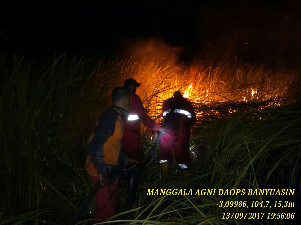 Rabu (13/09/2017), Manggala Agni Daerah Operasi (Daops) Banyuasin, Sumatera Selatan bersama-sama dengan anggota TNI dan POLRI melakukan pemadaman di beberapa wilayah Kabupaten Banyuasin dan sekitarnya. Tim pertama melakukan pemadaman di Kelurahan Pulo Kerto, Kecamatan Gandus, Kota Palembang seluas