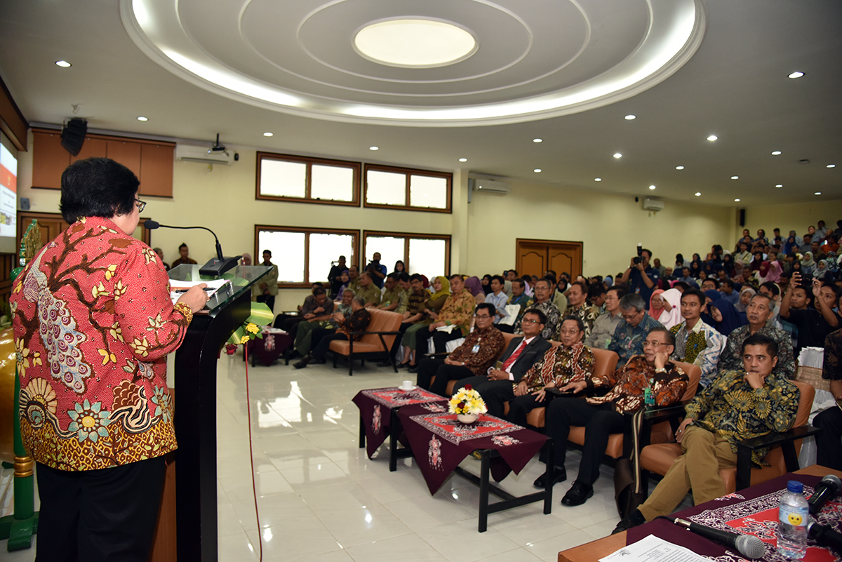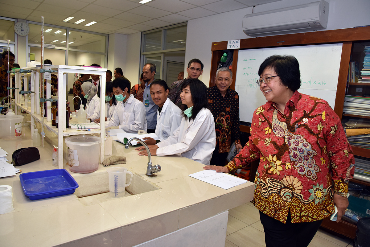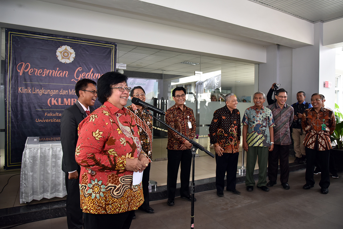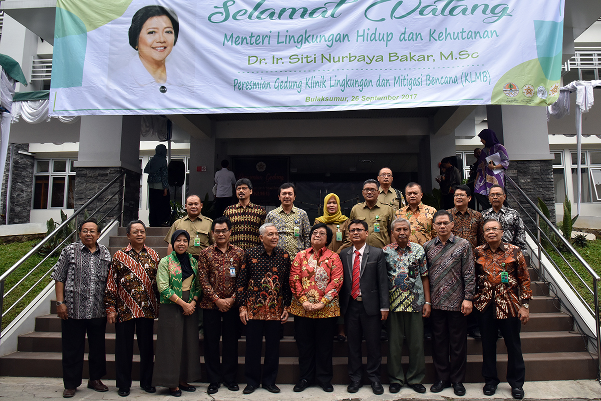 Menteri Lingkungan Hidup dan Kehutanan (LHK) Siti Nurbaya, meresmikan Klinik Lingkungan dan Mitigasi Bencana (KLMB) di Universitas Gadjah Mada (UGM), Selasa 26 September 2017. KLMB merupakan program riset bersama antara Kementerian LHK dan Fakultas Geografi, UGM. KLMB dibangun sebagai pusat inovasi dalam pengelolaan lingkungan dan mitigasi bencana berkelas dunia.