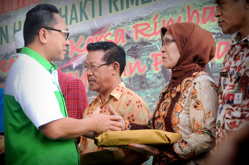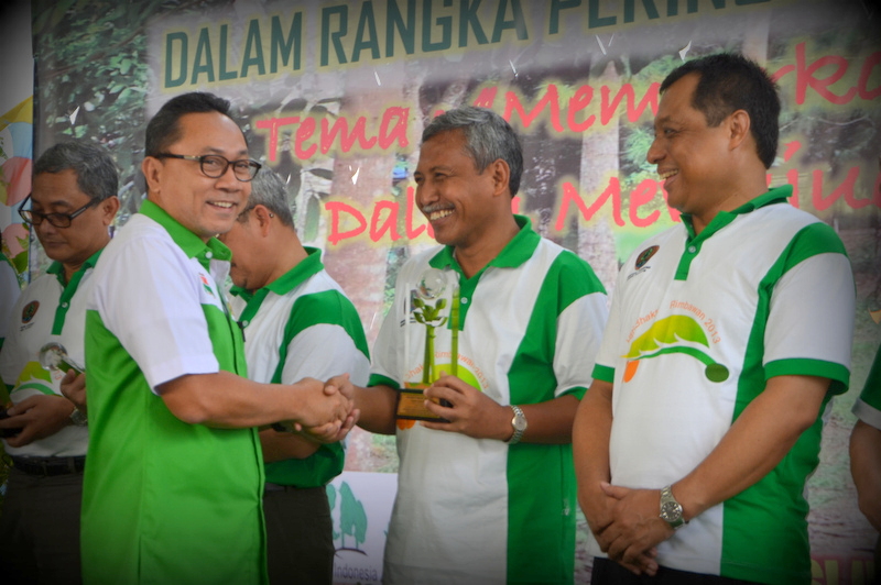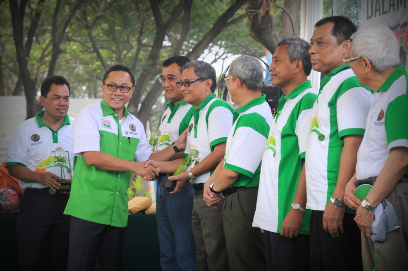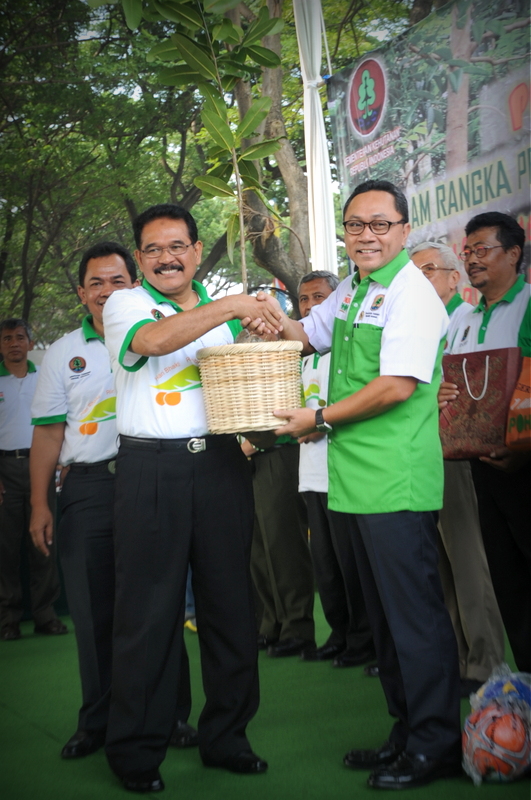 Pushumas Kemenhut, Jakarta : Menteri Kehutanan Zulkifli Hasan menghadiri acara Penanaman Pohon dan Bakti Sosial dalam rangka Hari Bakti Rimbawan di Hutan Kota Waduk Sunter Utara, Kelurahan Papanggo, Kec. Tanjung Priok, Jakarta Utara, Kamis (14/3). Turut hadir dalam acara ini Menteri Pekerjaan Umum Djoko Kirmanto dan Deputi Gubernur DKI Bidang Pengendalian Kependudukan dan Pemukiman serta beberapa pejabat di lingkungan Kemenhut.