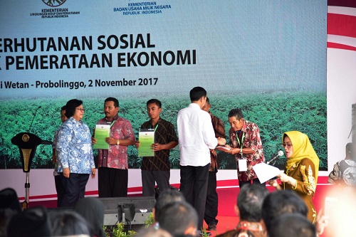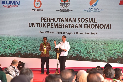Probolinggo, Kementerian Lingkungan Hidup dan Kehutanan (KLHK), 2 November 2017. Setelah Provinsi Jawa Barat, Presiden Joko Widodo melakukan pengecekan lapangan program terpadu Perhutanan Sosial ke Provinsi Jawa Timur, tepatnya di Desa Brani Wetan, Kabupaten Probolinggo, Kamis (2/11/2017).