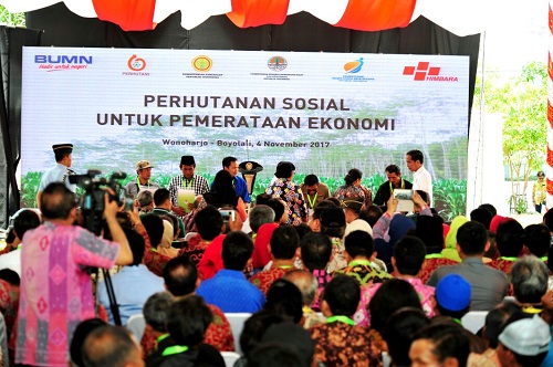 Safari Presiden RI Joko Widodo dalam rangka penyerahan SK pengelolaan Hutan Sosial dalam mewujudkan pemerataan ekonomi melalui akses kelola masyarakat terhadap hutan kini tiba di Boyolali Jawa Tengah. Setelah sebelumnya menyambangi Muara Gembong Kabupaten Bekasi Jawa Barat dan Probolinggo Jawa Timur, hari ini Presiden Joko Widodo menyampaikan pesan yang sama pada para petani saat penyerahan SK kepada kelompok tani hutan di Desa Wonoharjo, Kecamatan Kemusu Kabupaten Boyolali, bahwa kawasan yang sudah diberikan izin mohon digunakan sebaik-baiknya sesuai dengan misi menyejahterakan rakyat.
