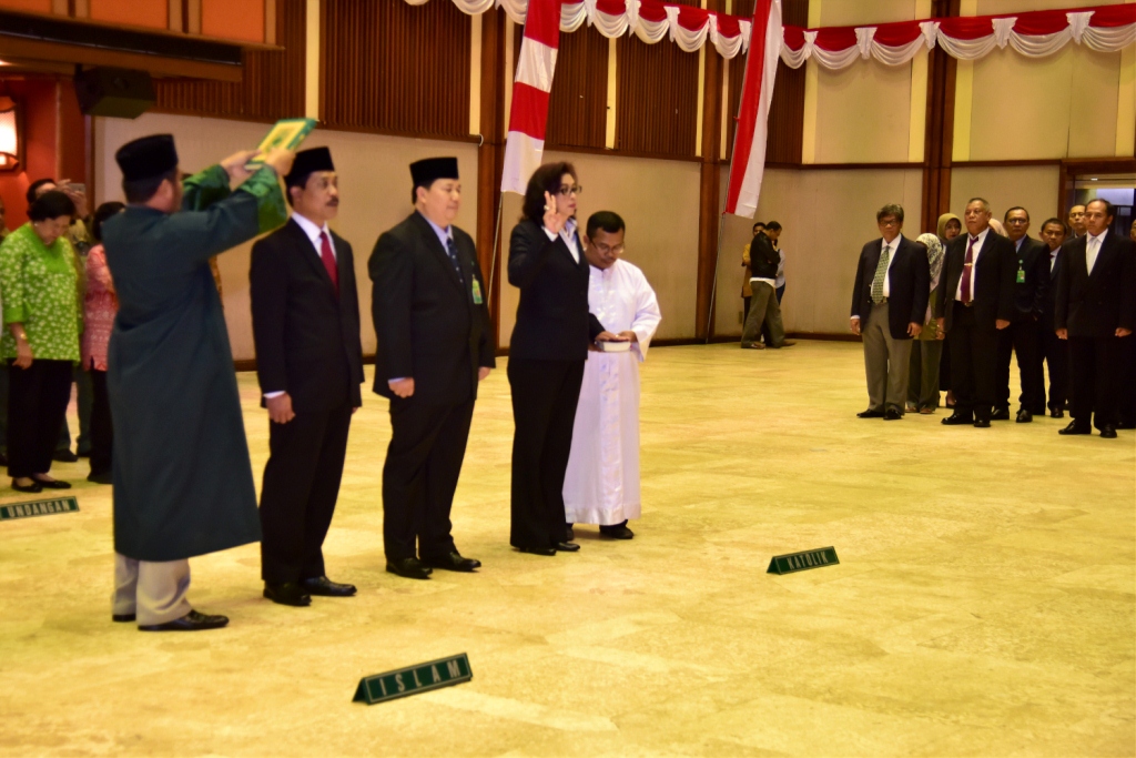 Jakarta, Kementerian Lingkungan Hidup dan Kehutanan (KLHK), Selasa, 7 November 2017. Sebanyak 3 (tiga) Pejabat Pimpinan Tinggi Madya (Eselon I) Lingkup KLHK dilantik oleh Menteri LHK, Siti Nurbaya, di Jakarta (07/11/2017). Hal ini merupakan salah satu upaya menuju tata kelola pemerintahan yang baik, teratur, terintegrasi, dan terbarukan.