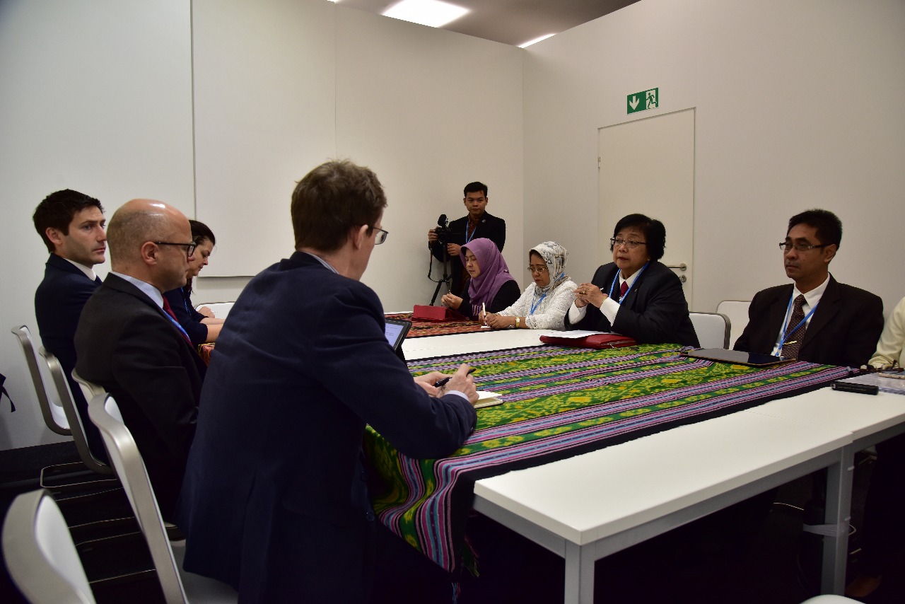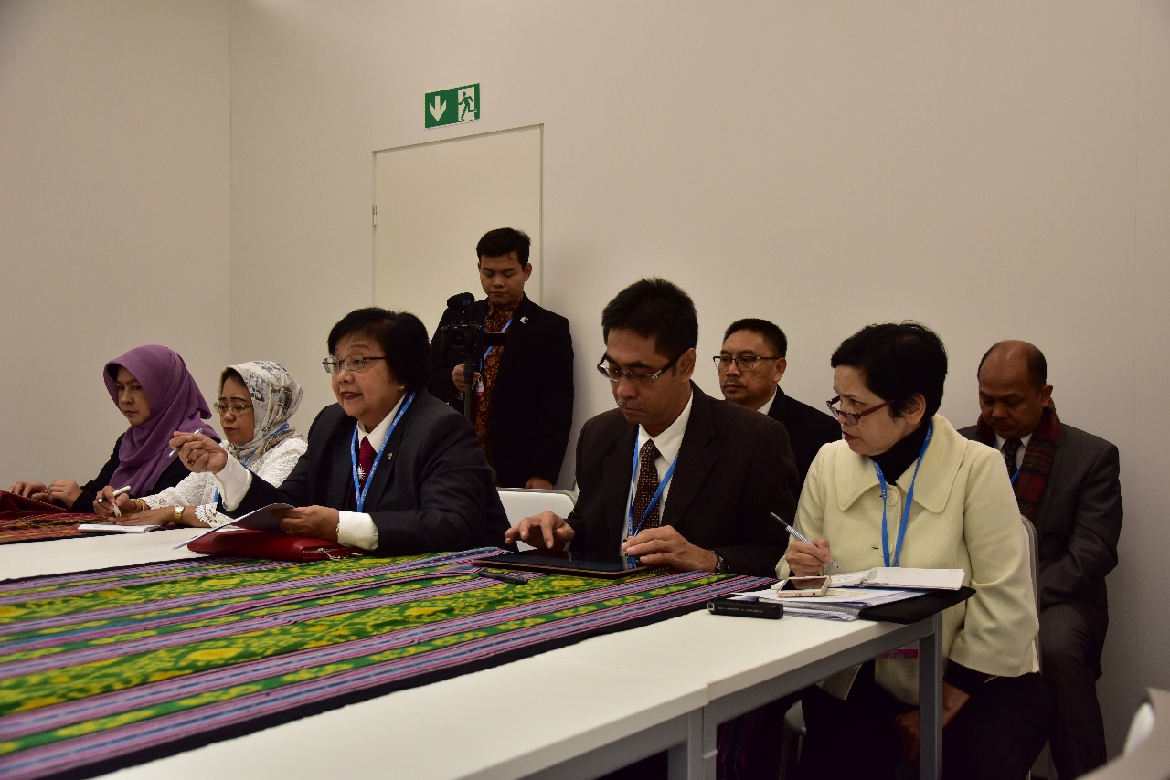 Bonn-Jerman, Biro Humas Kementerian Lingkungan Hidup dan Kehutanan (KLHK), Kamis, 16 November 2017. Seiring semangat negosiasi pengendalian perubahan iklim pada COP 23 UNFCCC, Menteri LHK, Siti Nurbaya, mewakili Indonesia, berdialog dengan Menteri Lingkungan Hidup dan Iklim Norwegia, Mr. Vidar Hegelsen, di Ruang Sekretariat DELRI, Bonn-Jerman, waktu setempat (16/11/2017).